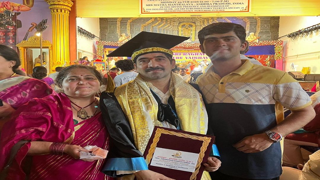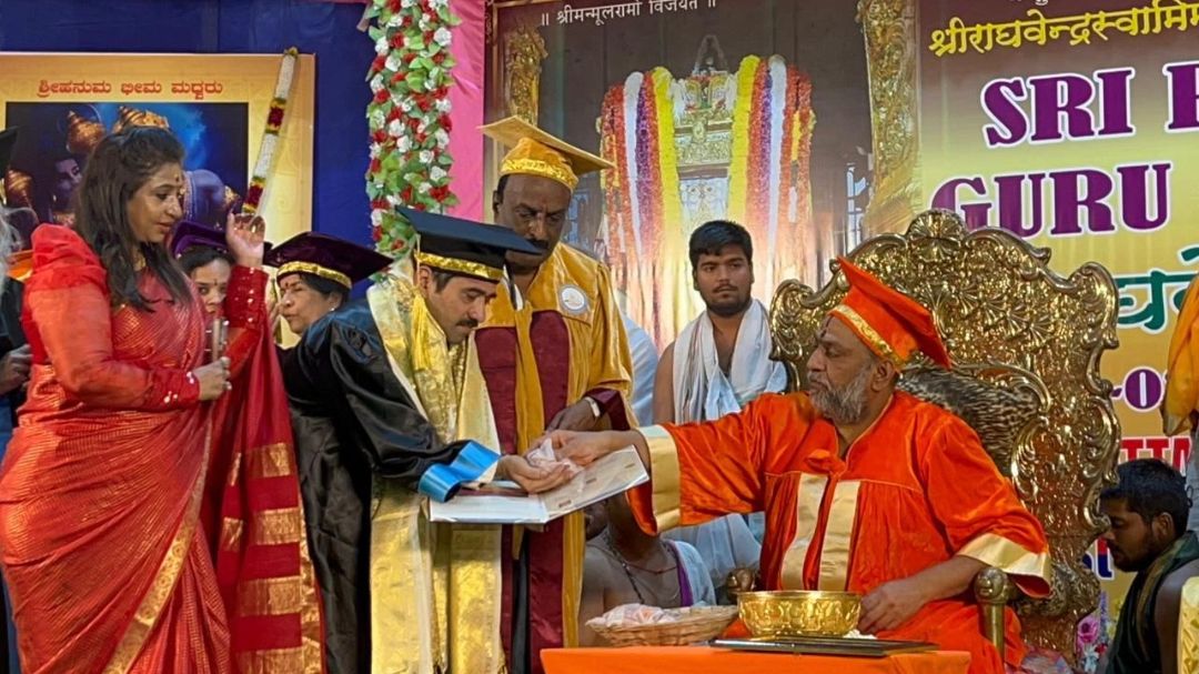Latest News Date 24 Feb 2026 Vidwan Received "Doctorate in Philosophy from Yoga Samskrutham University Florida USA, at the divine hands of His Holiness Swamiji of Mantralaya"